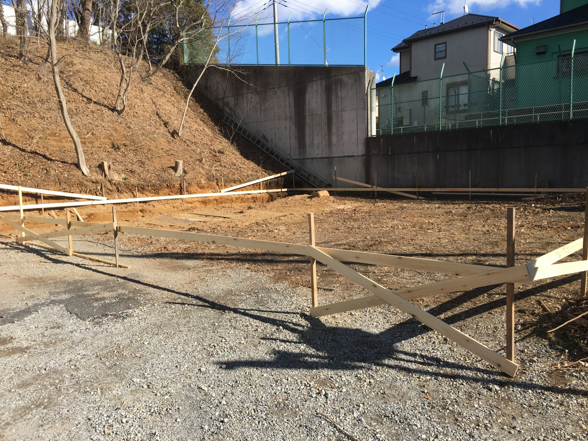 この間、当社で手掛け、竣工したお宅の敷地は、敷地の約半分が、30°くらいの崖が占有していました。