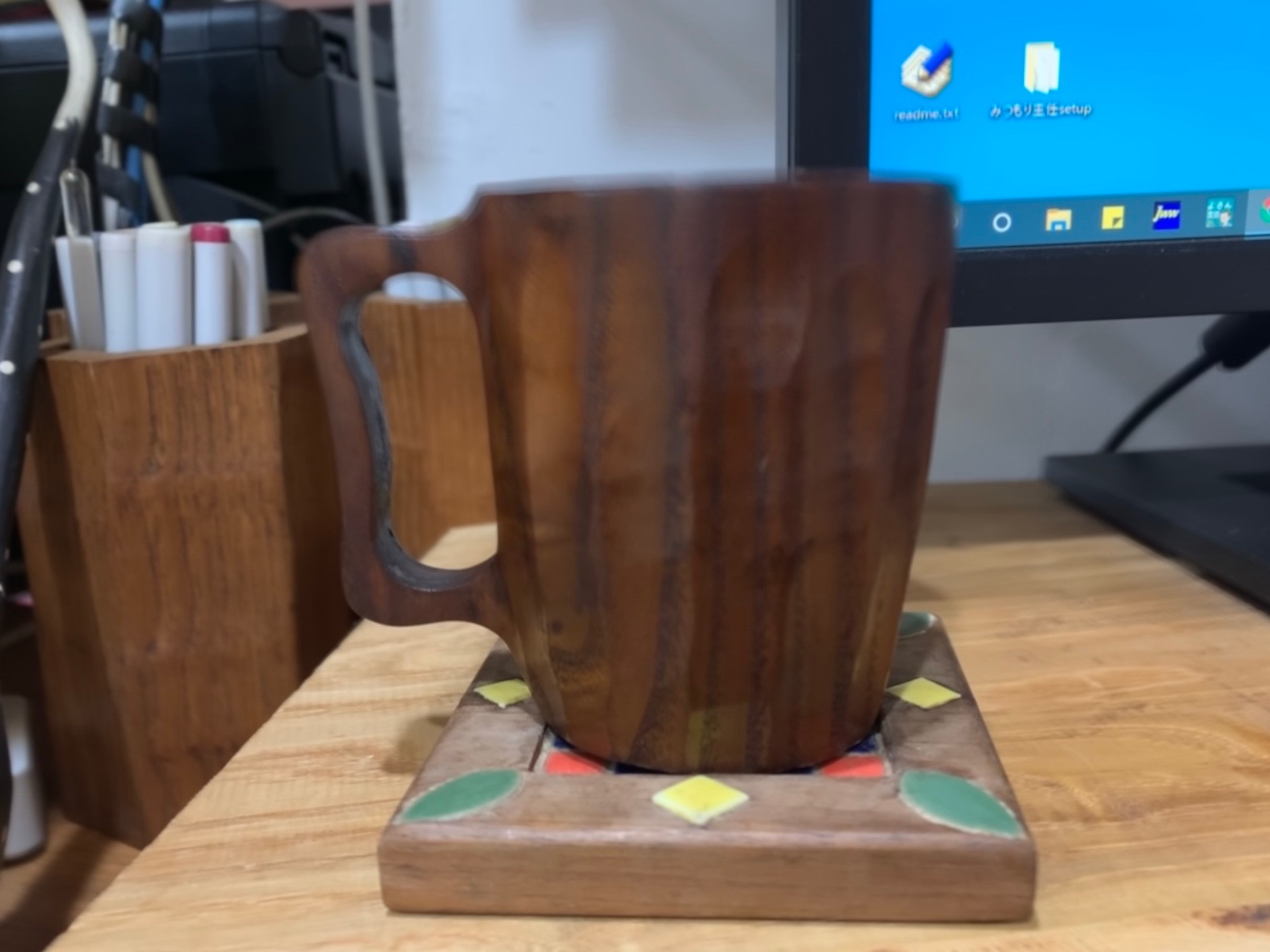 私は、普段から愛用しているコップが、日光の一刀彫りのコップです。