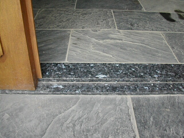 床の玄昌石とタイルとワックス