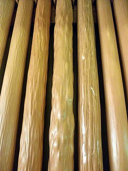 木材全般で言える事ですが、歳を重ねた材料ですと、年輪が緻密で、縞模様が細かくなります。