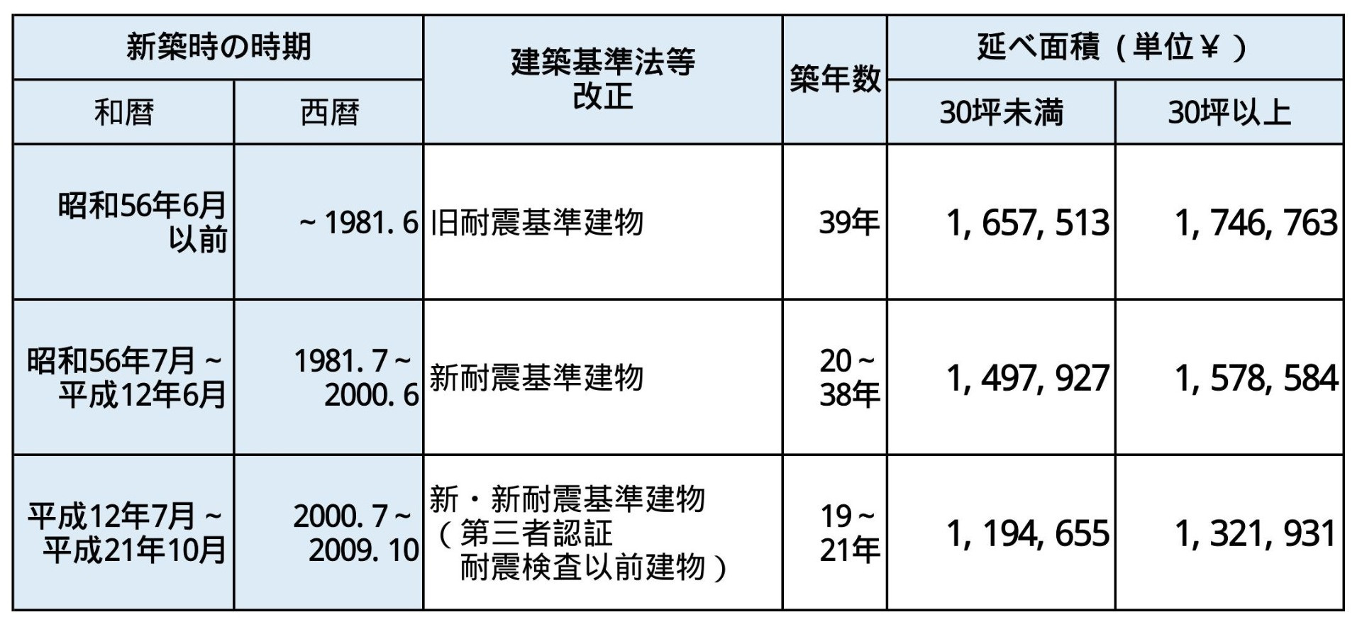 耐震補強は、現状建物の補強数や補強方法で違いはありますが、目安をご覧ください。