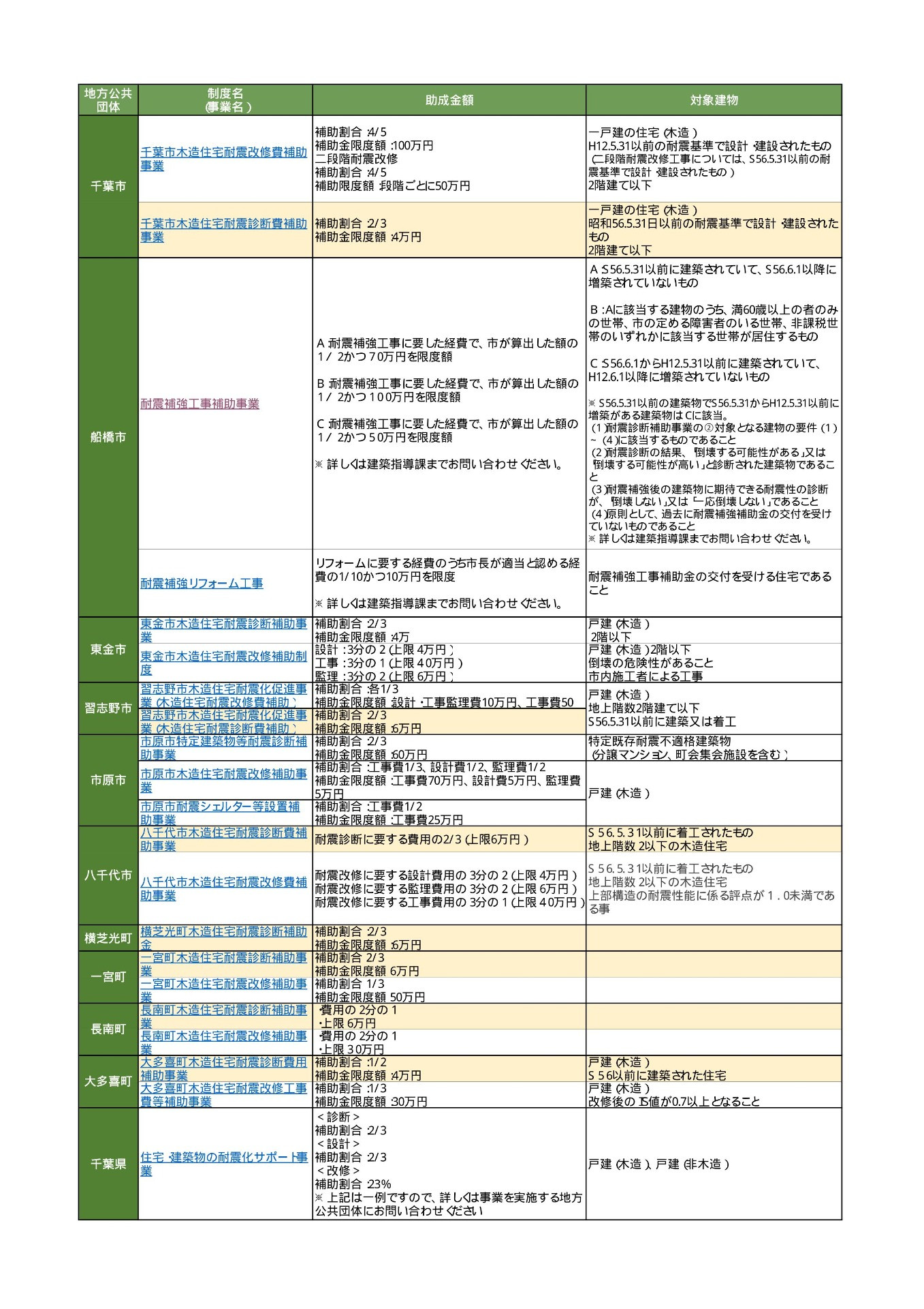 耐震補強工事については、各地方公共団体で相違があります。