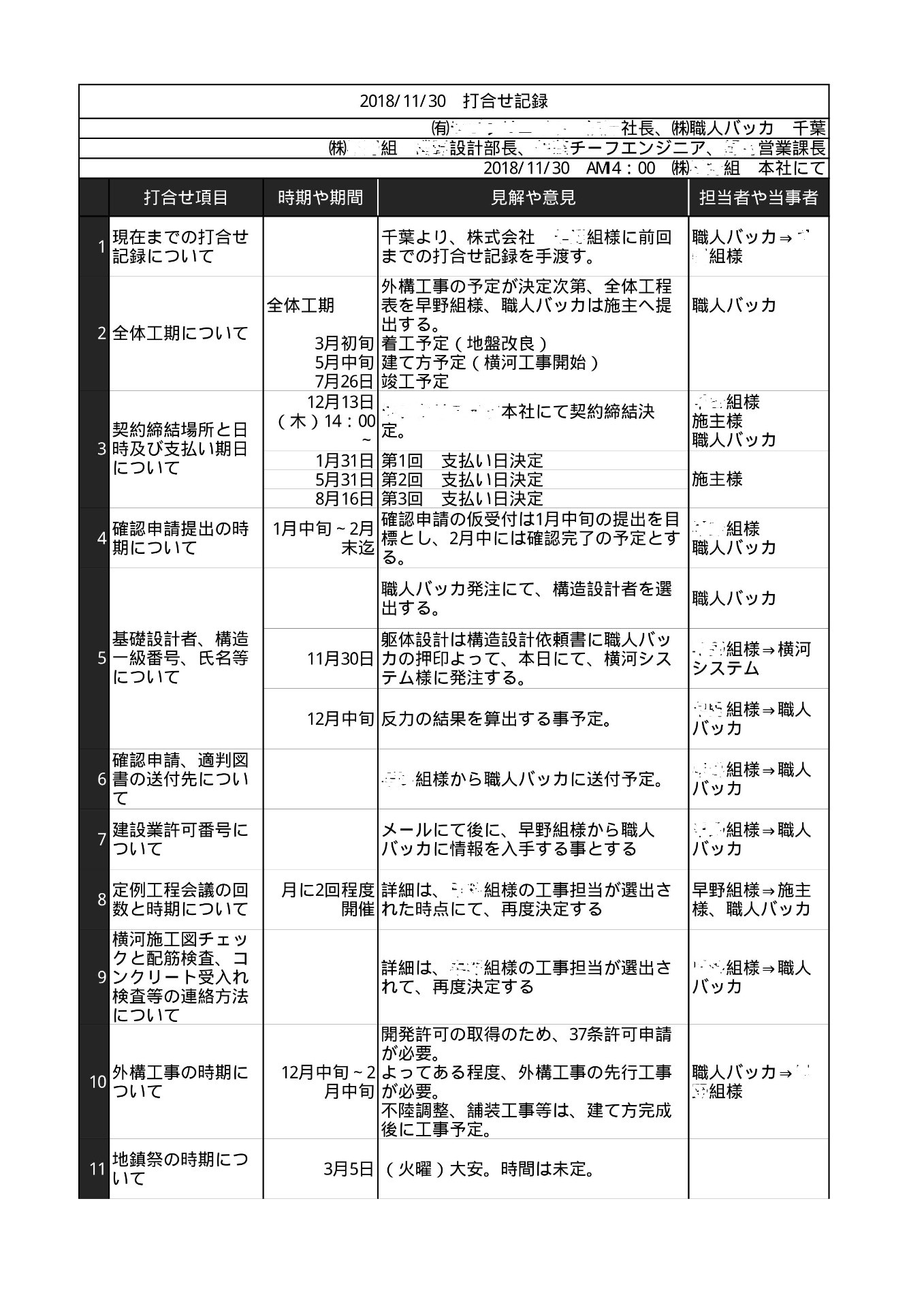 7、「打合せ記録」は、1週間以内に毎回、業者から提出してもらう