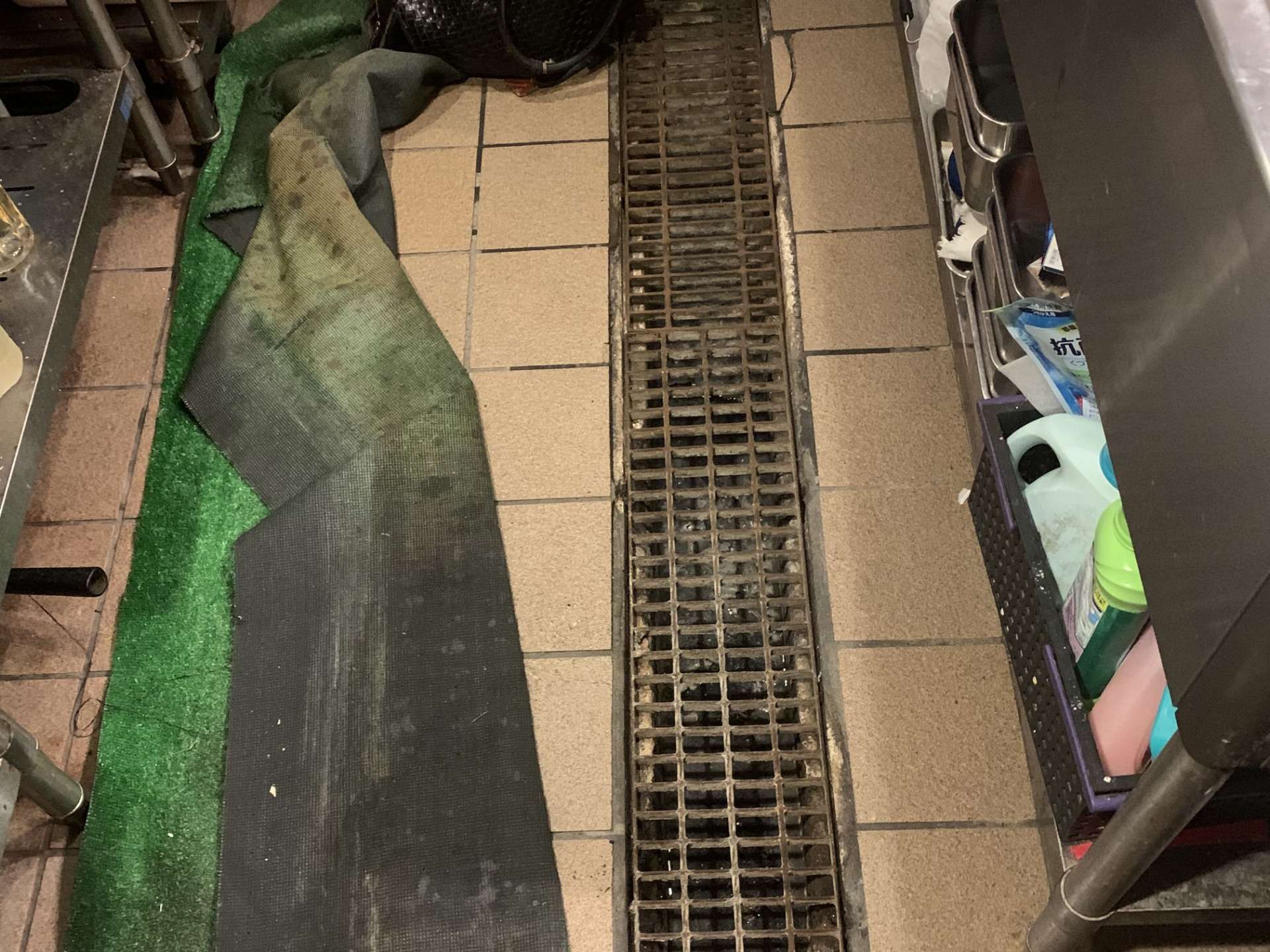 店舗内の排水溝がコンクリートで、流れの悪い事から、ステンレス製の排水溝に改修し、