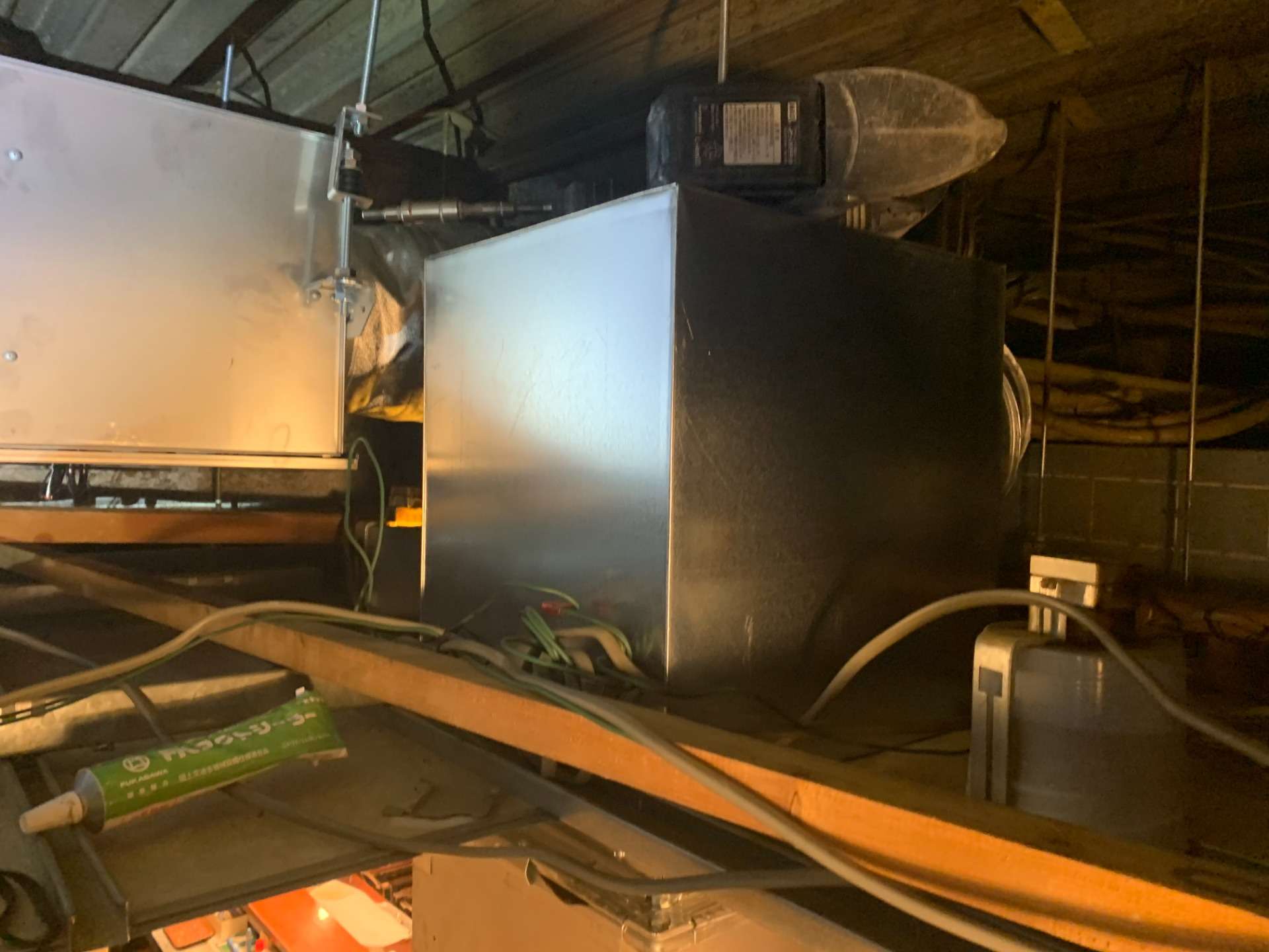 新たに、ダクトを設け、近くにあったアルミサッシに対して、排気口を設けました。