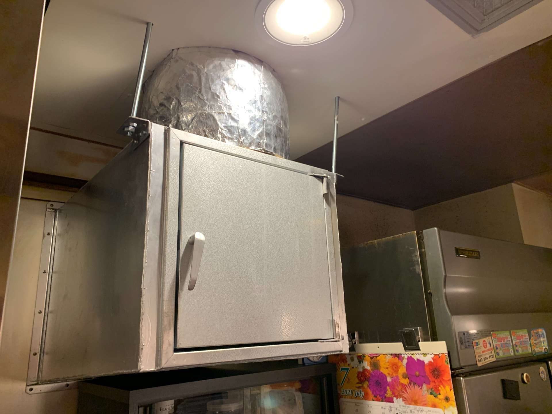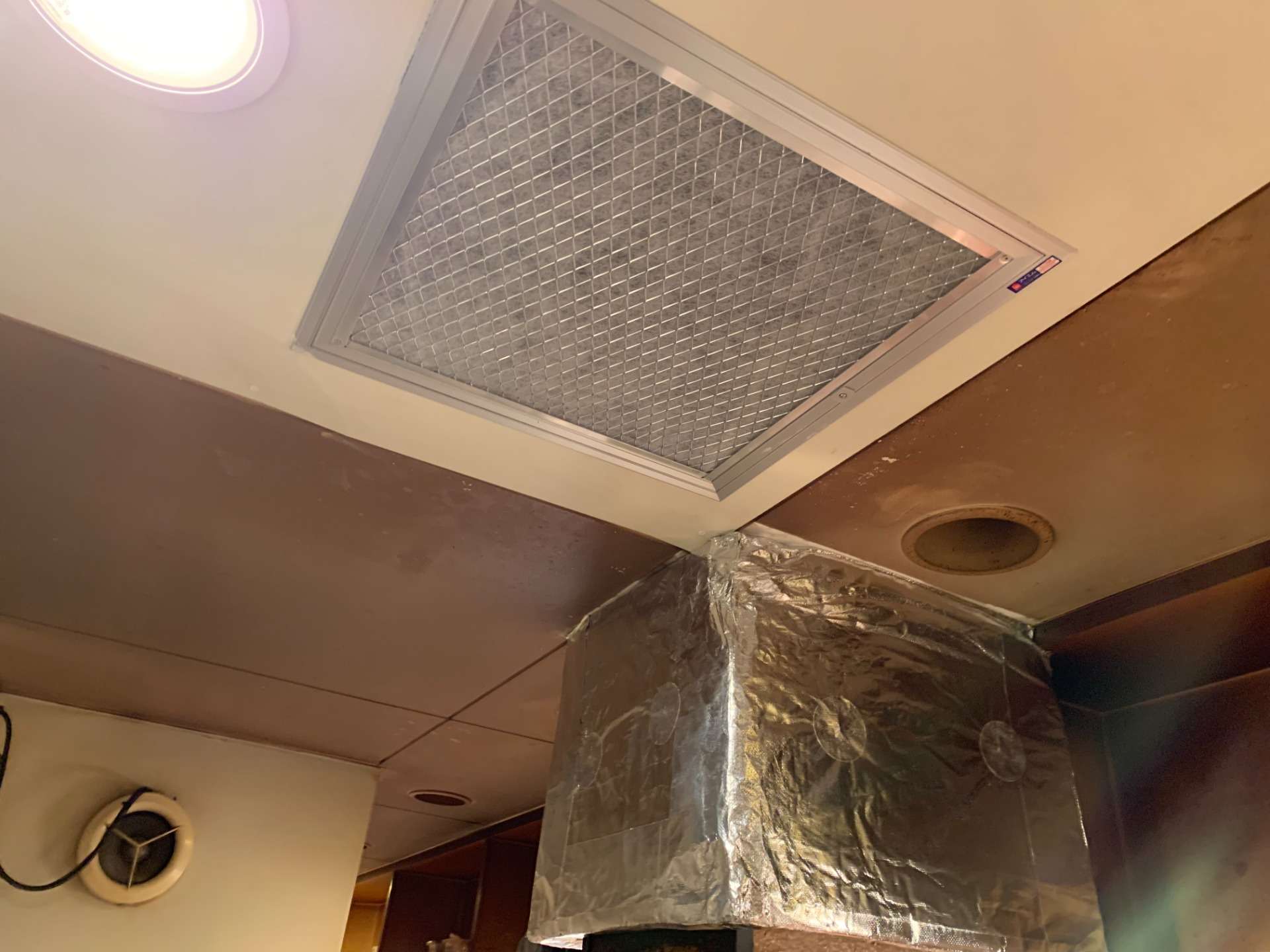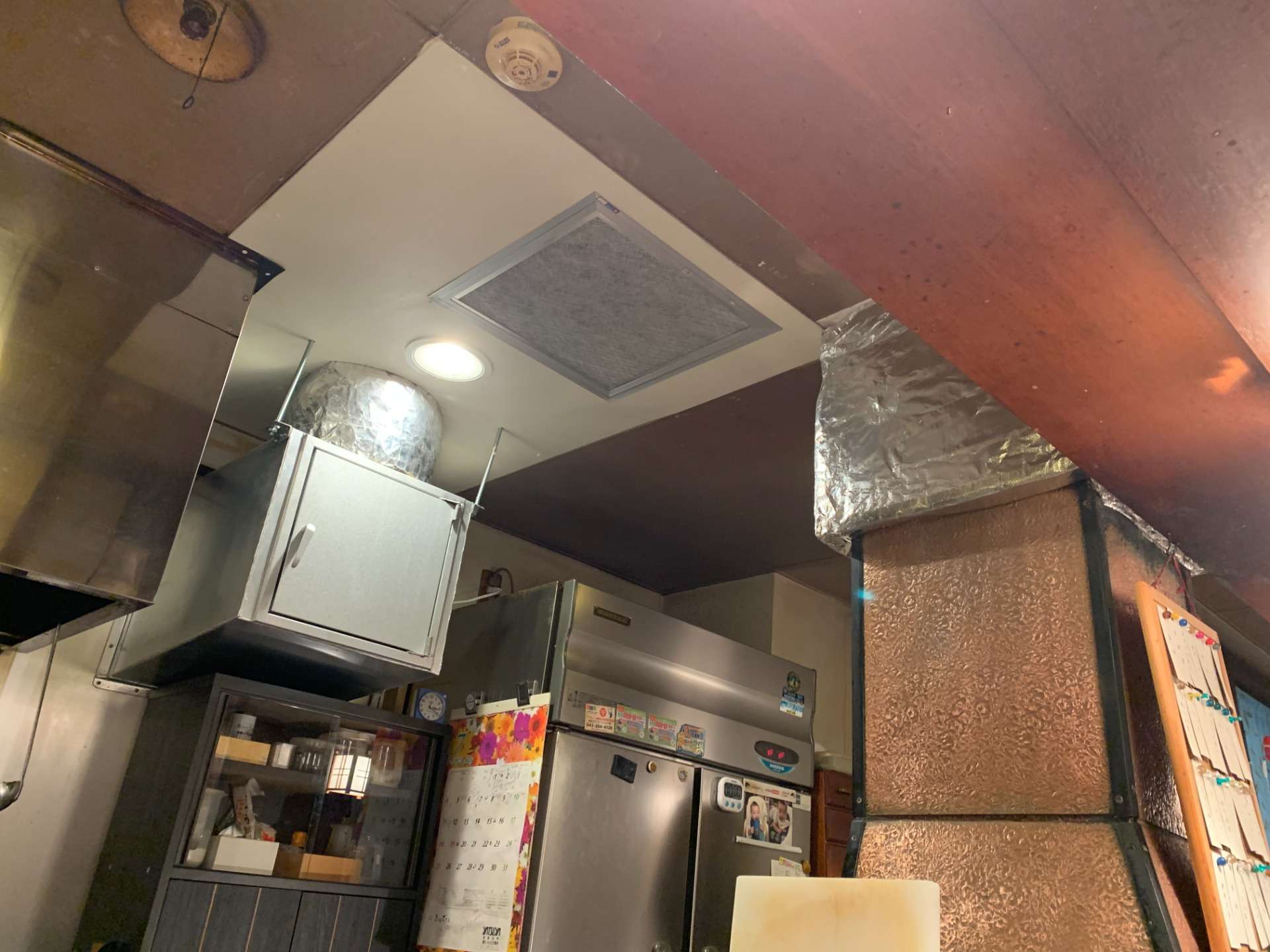 揚げ物のフライヤー上部にあるレンジフードが、オープン当初から吸い込みが悪いとの事で、