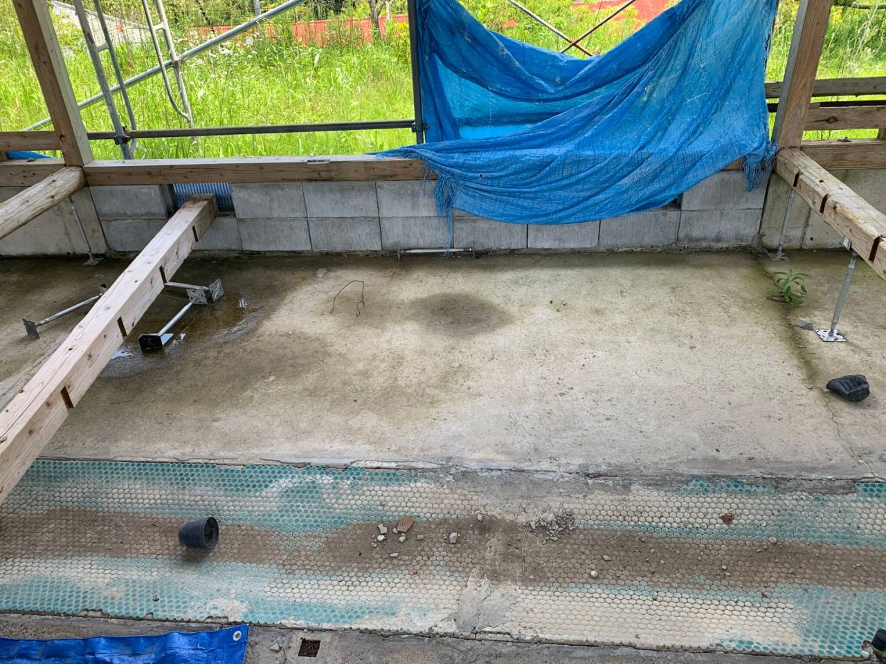 基礎自体、東西方向で最大3cmほど段差があり、躯体も垂直で28mmほど傾いた状態でした。