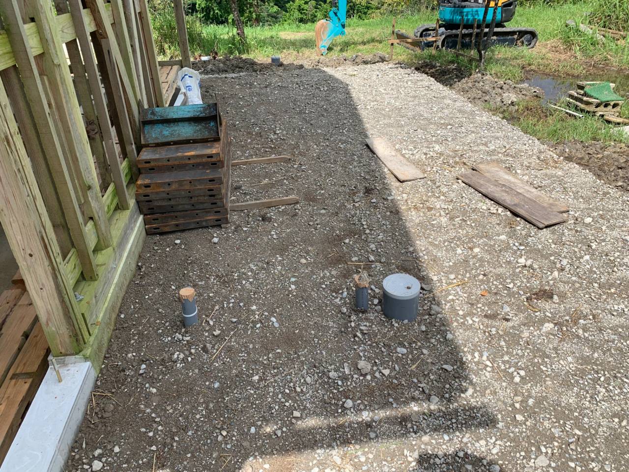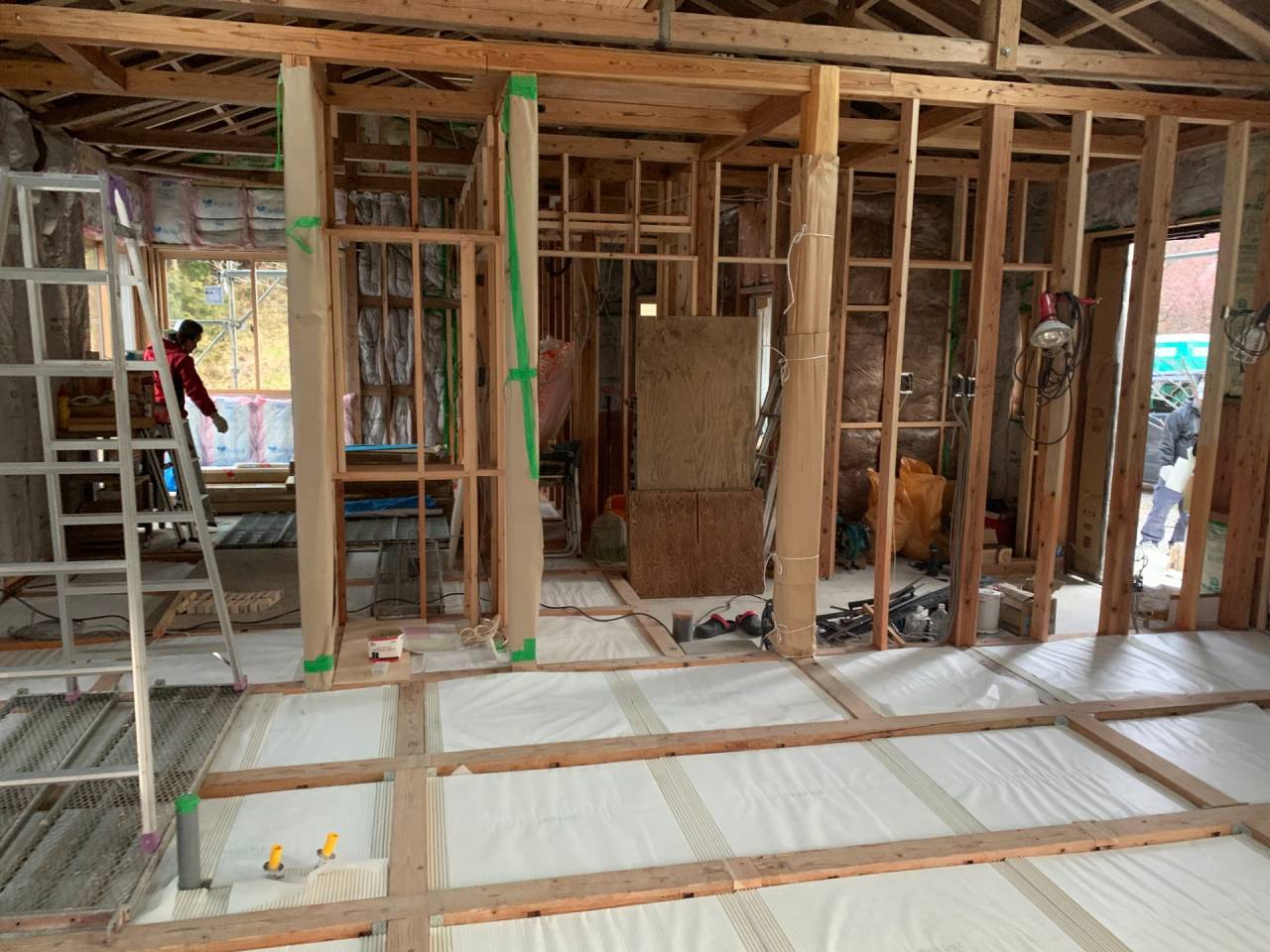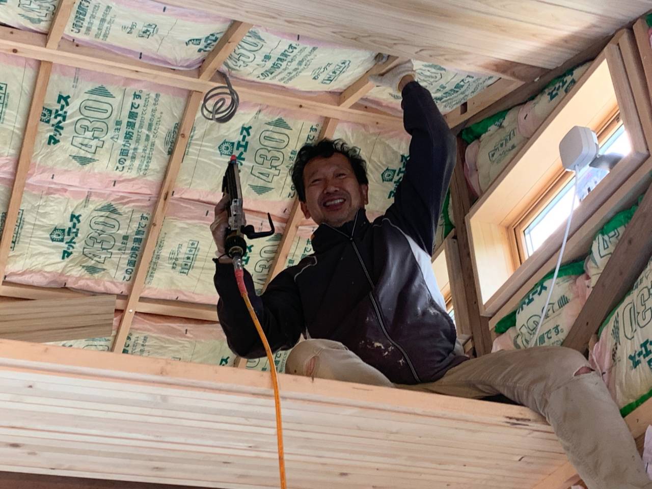 60代初期の男性(医薬品等の貿易会社経営者)がDIYサポートの共同作業で、牛小屋から、住宅に改修する作業の風景です。