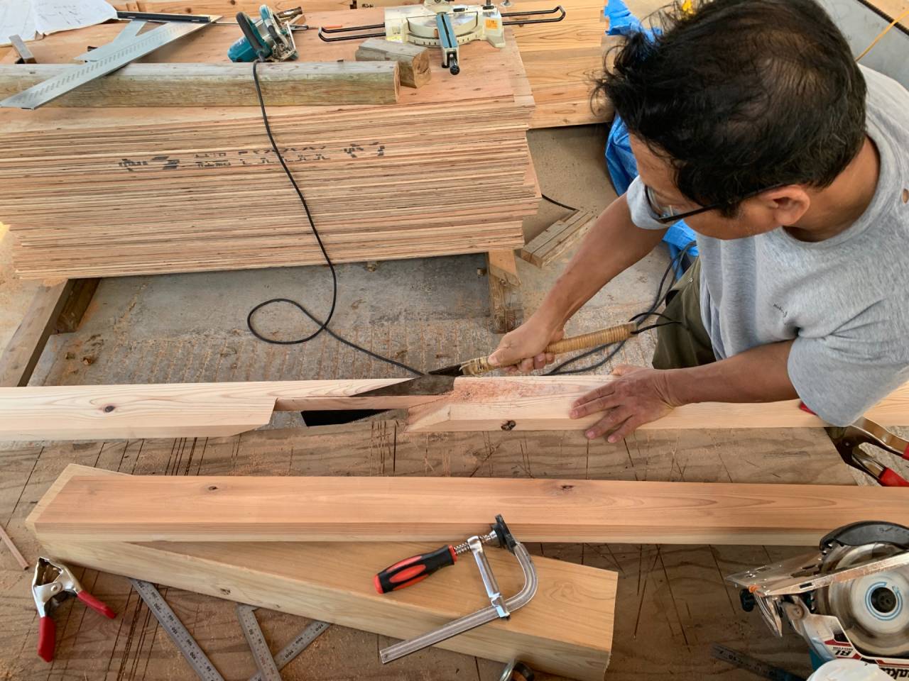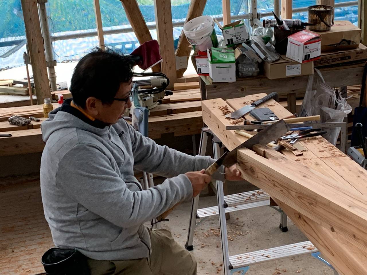 コロナが大流行しているさなか、多忙なスケジュールを調整して現場で造作。大半の工程に参加。