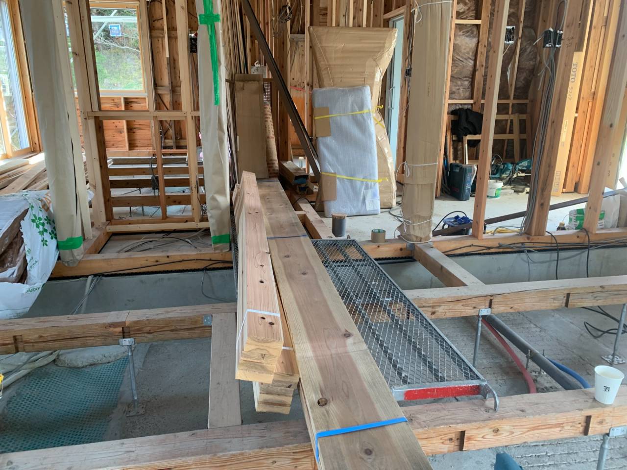 以降、お施主様の珪藻土の左官工事を残し、引き渡し。