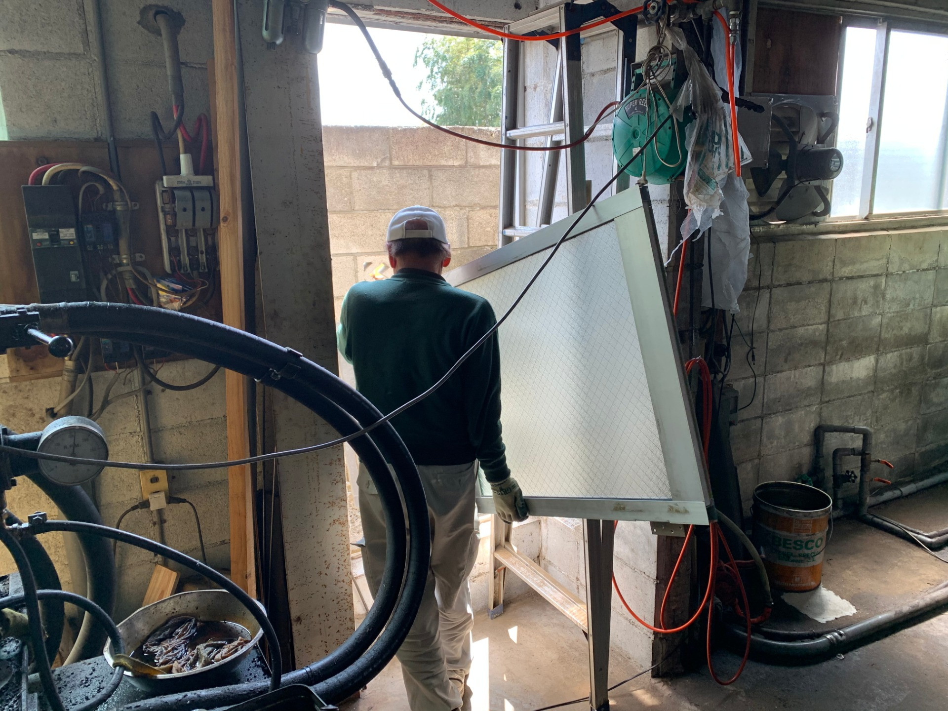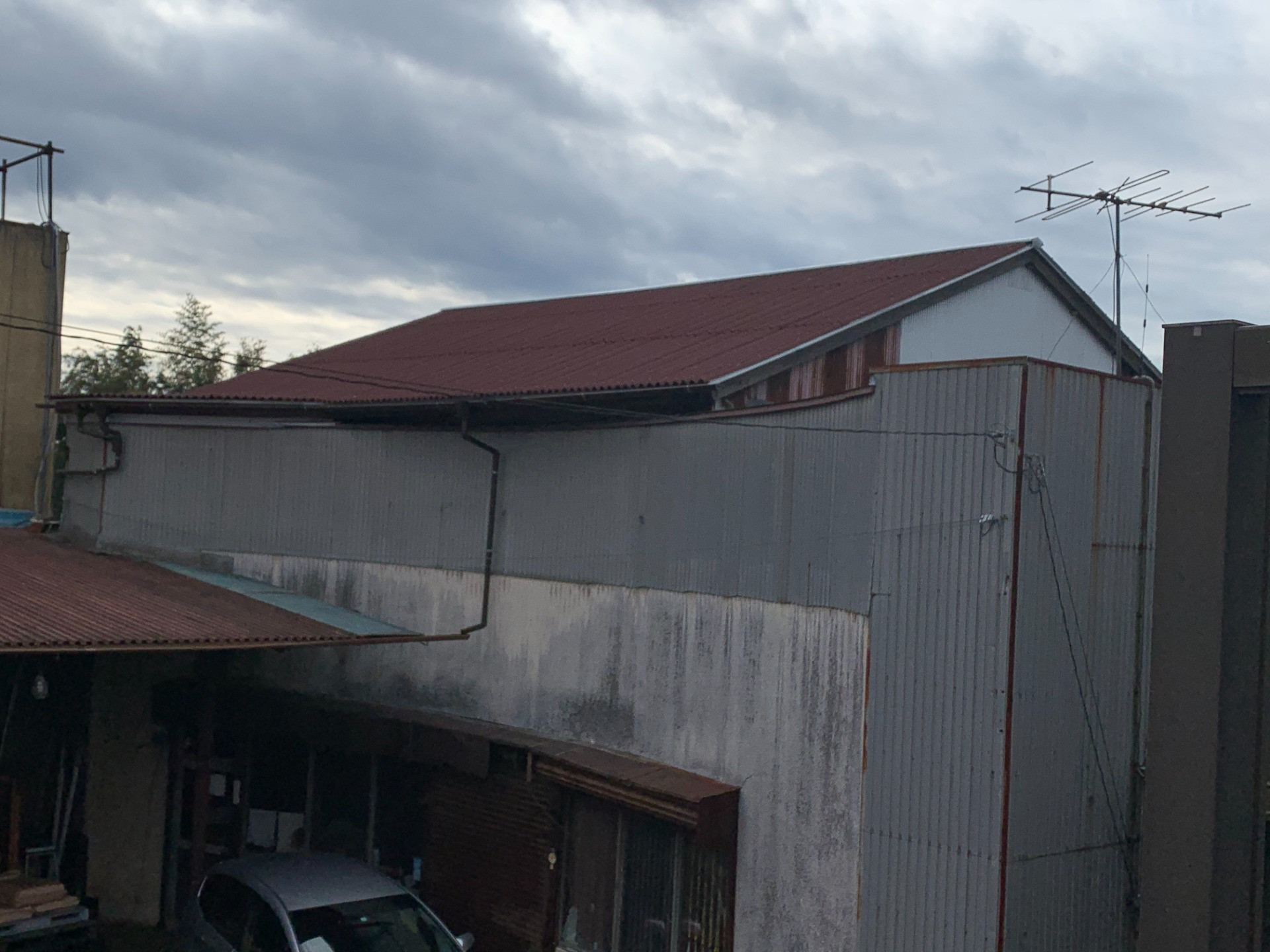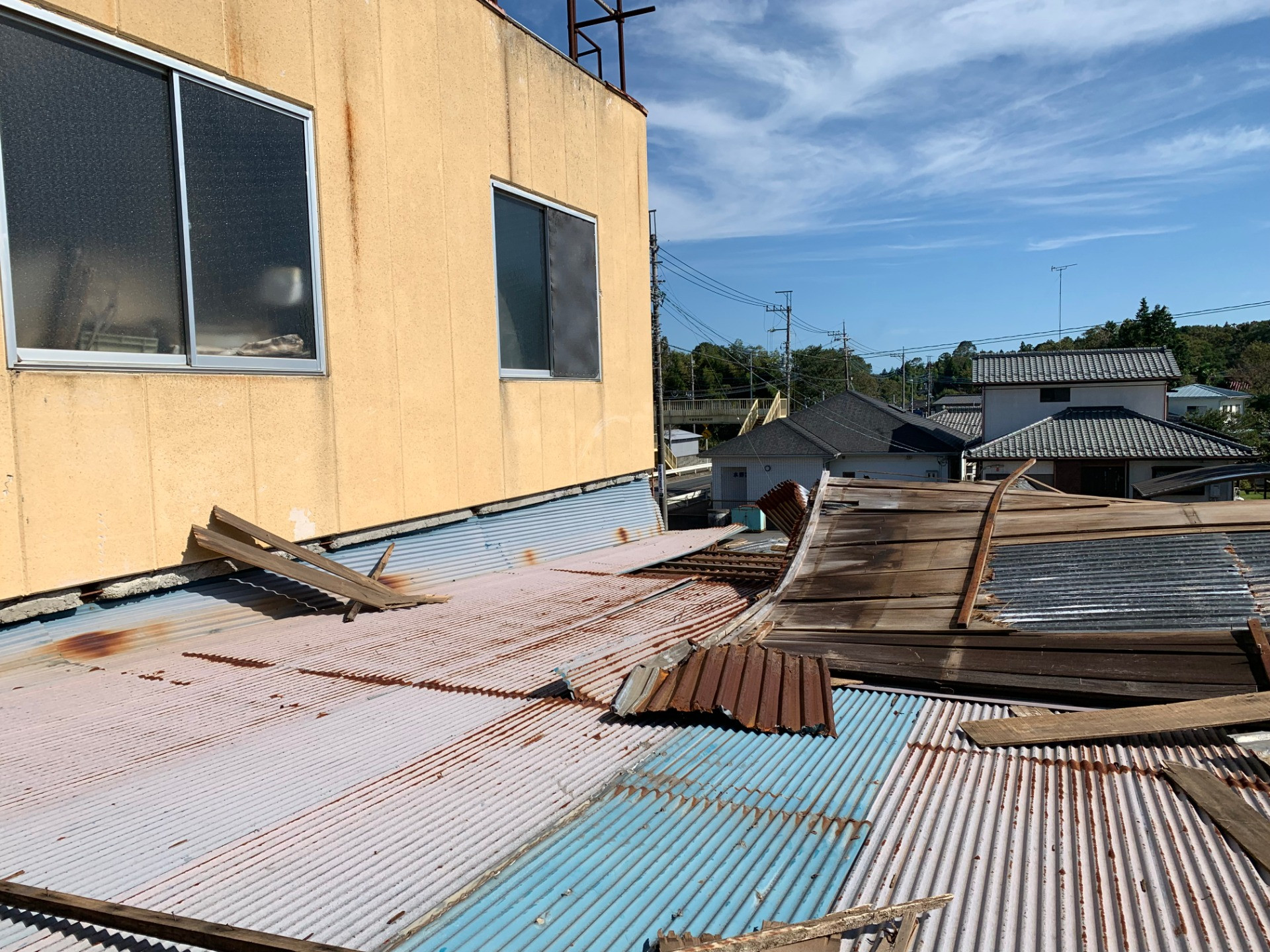工場でですが、去年の台風15号の被害によって屋根がめくれてしまいました。