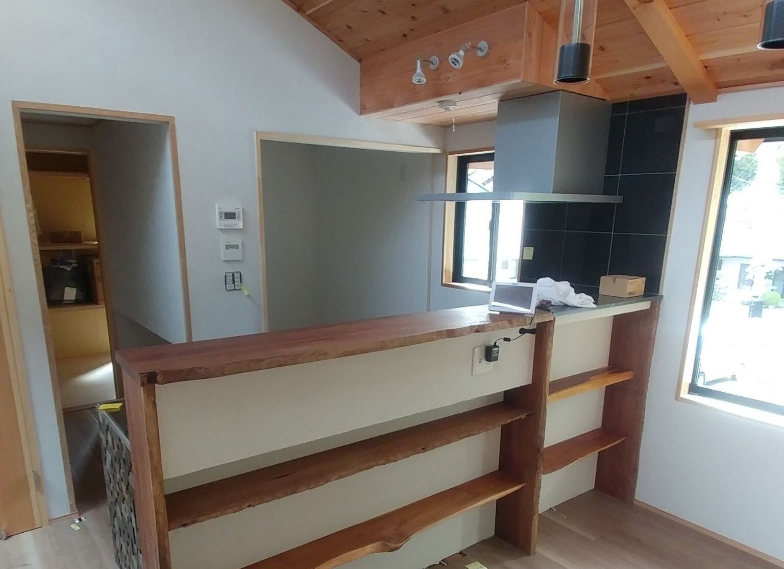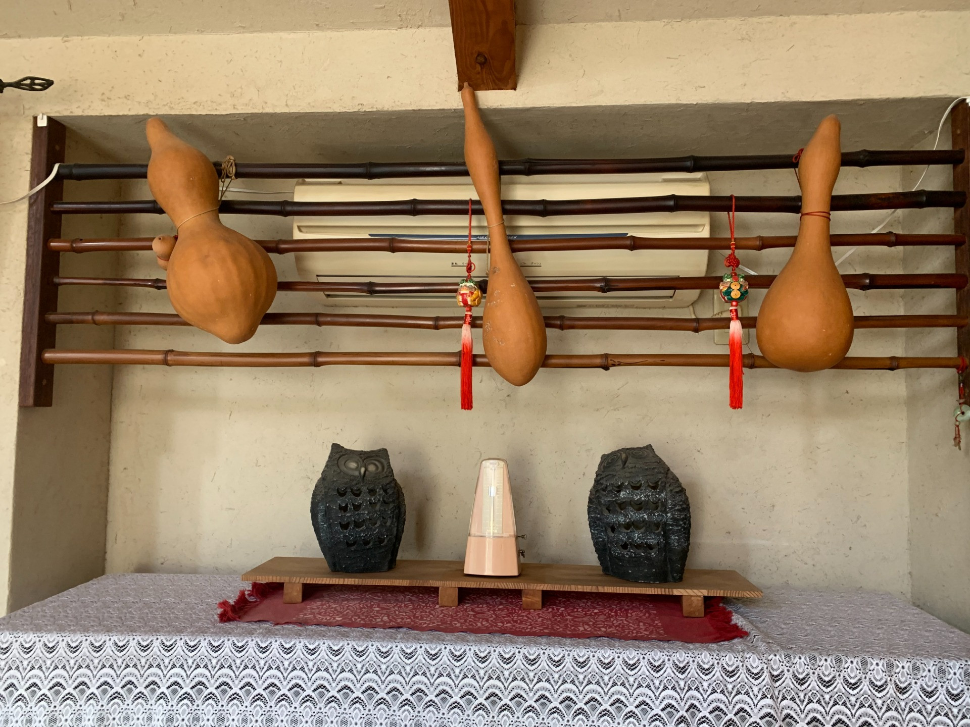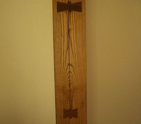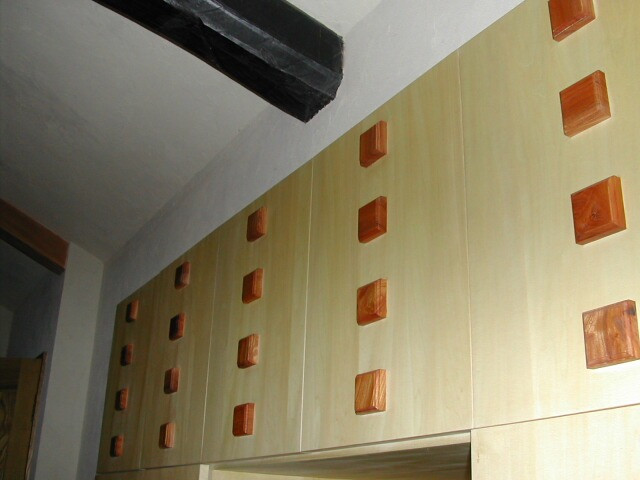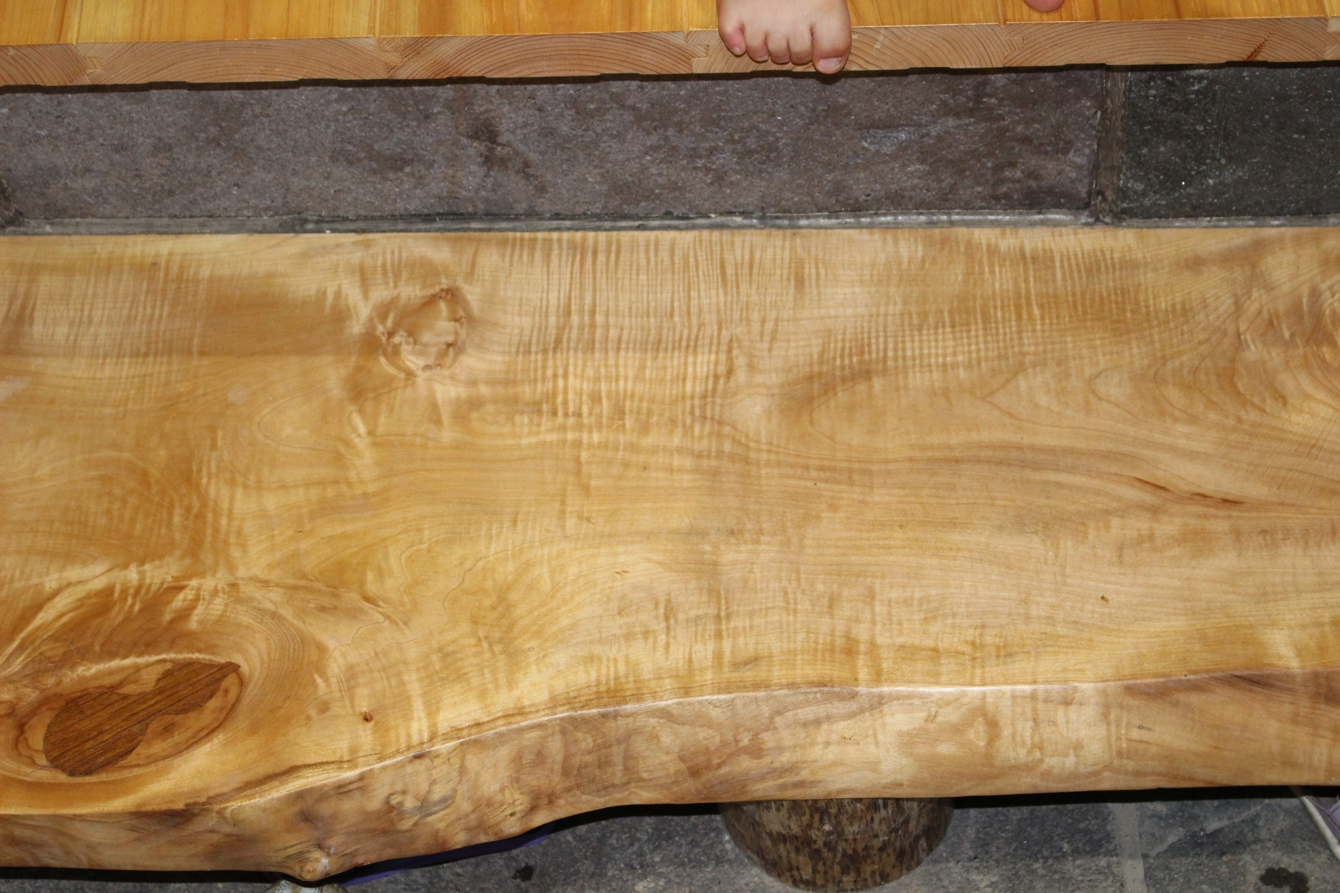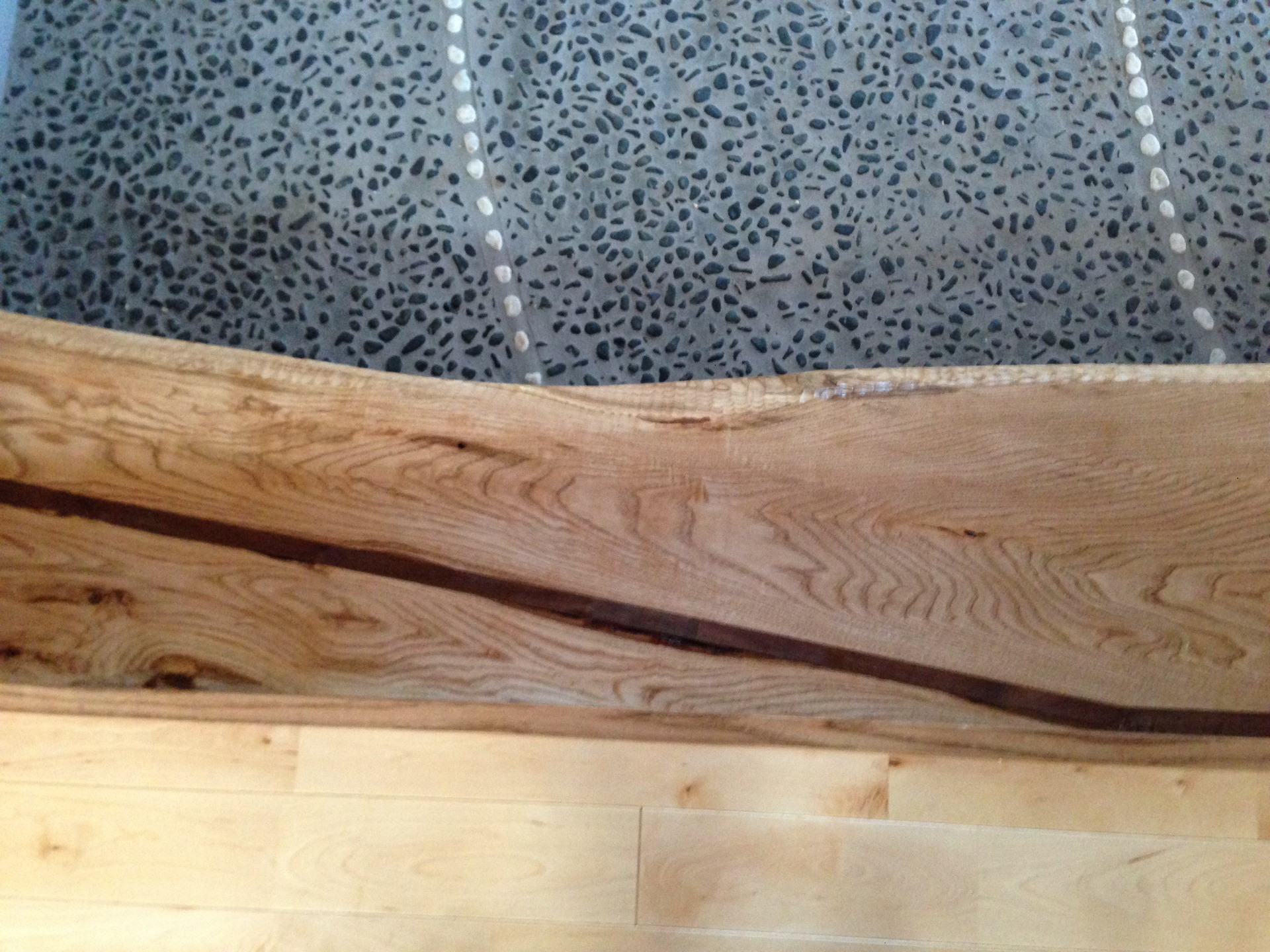 玄関式台 栃 虫食い部に「瓢箪とコマ」を入れてみました。職人バッカ施工