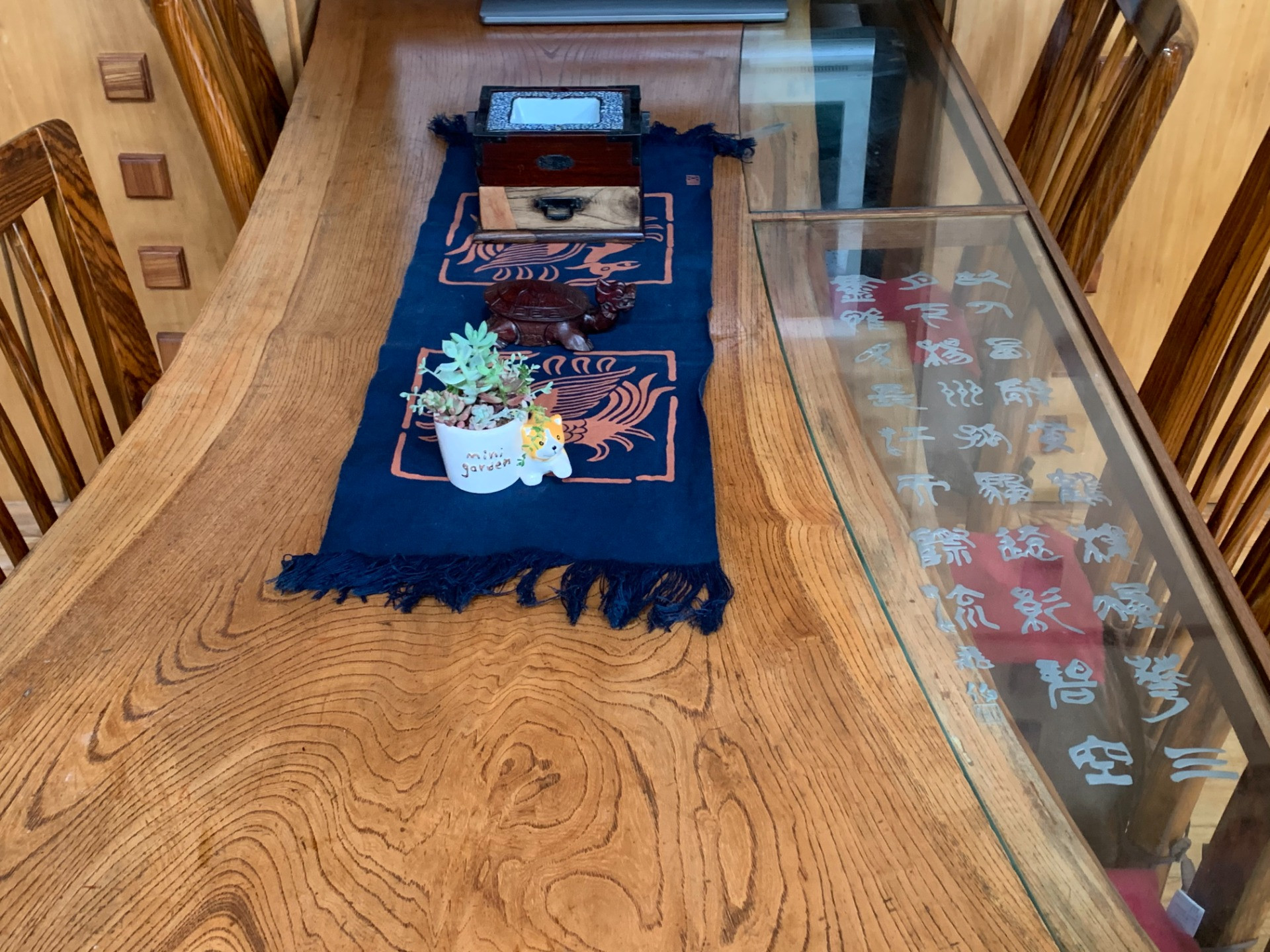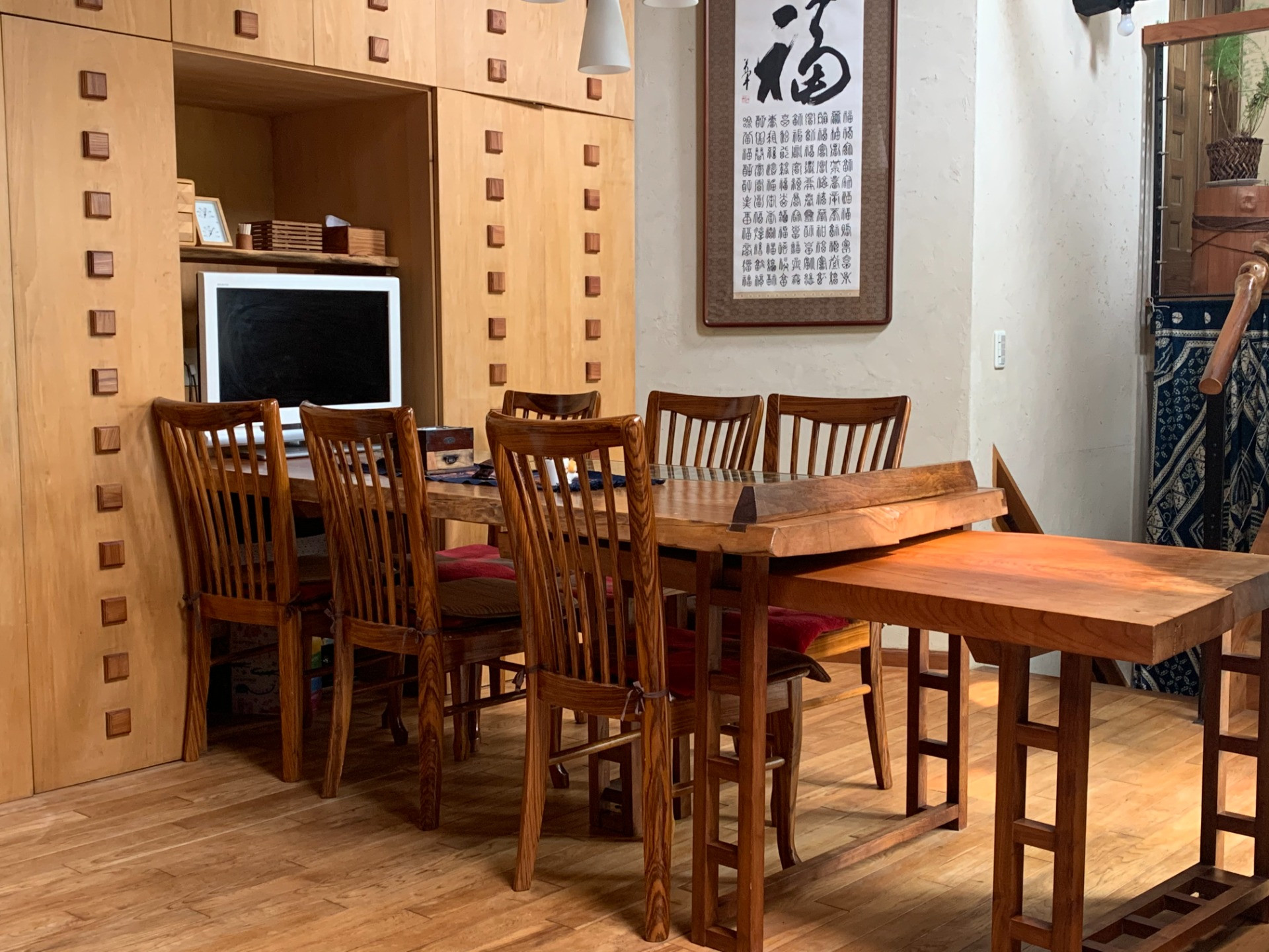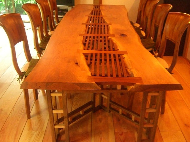テーブル 欅材 製作品 2段スライド式(普段は6人掛けで、最大10人掛け)