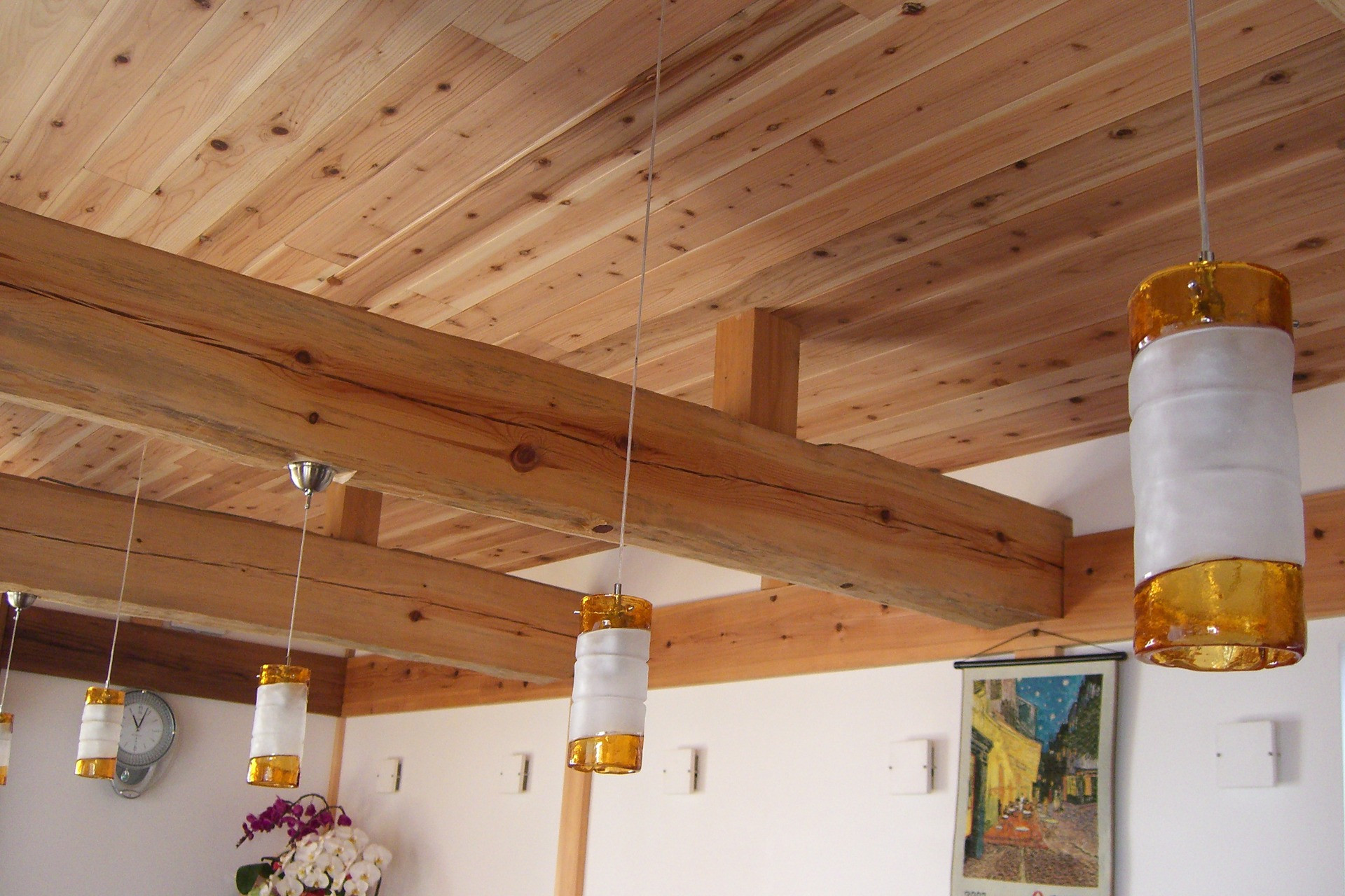 黄肌材と晒し竹の照明 製作品(職人バッカ施工)