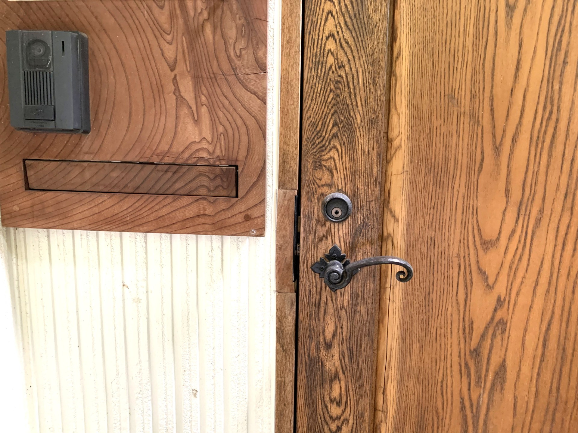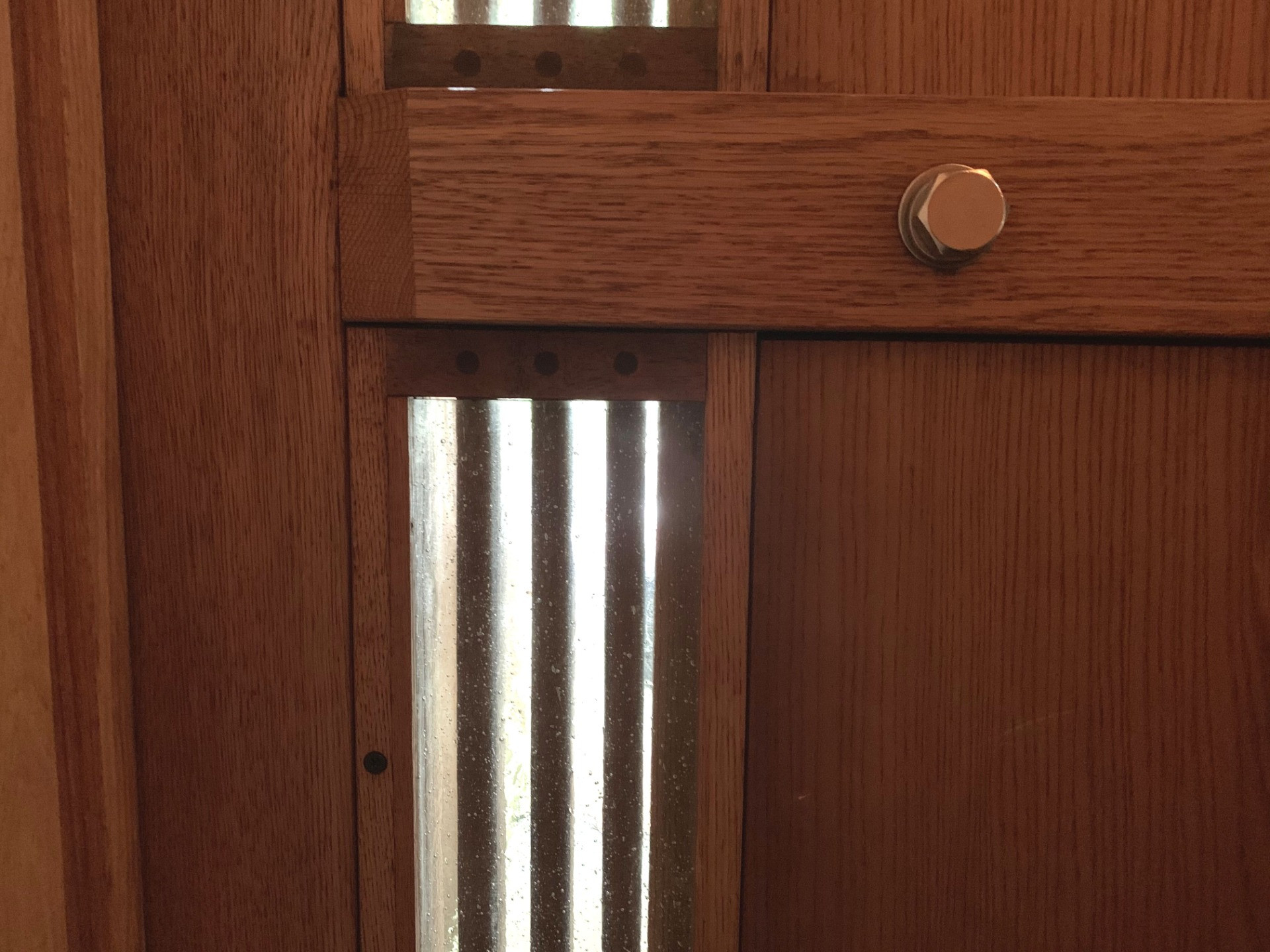 ドア改修 楢材のステンレスビス留め 職人バッカ施工