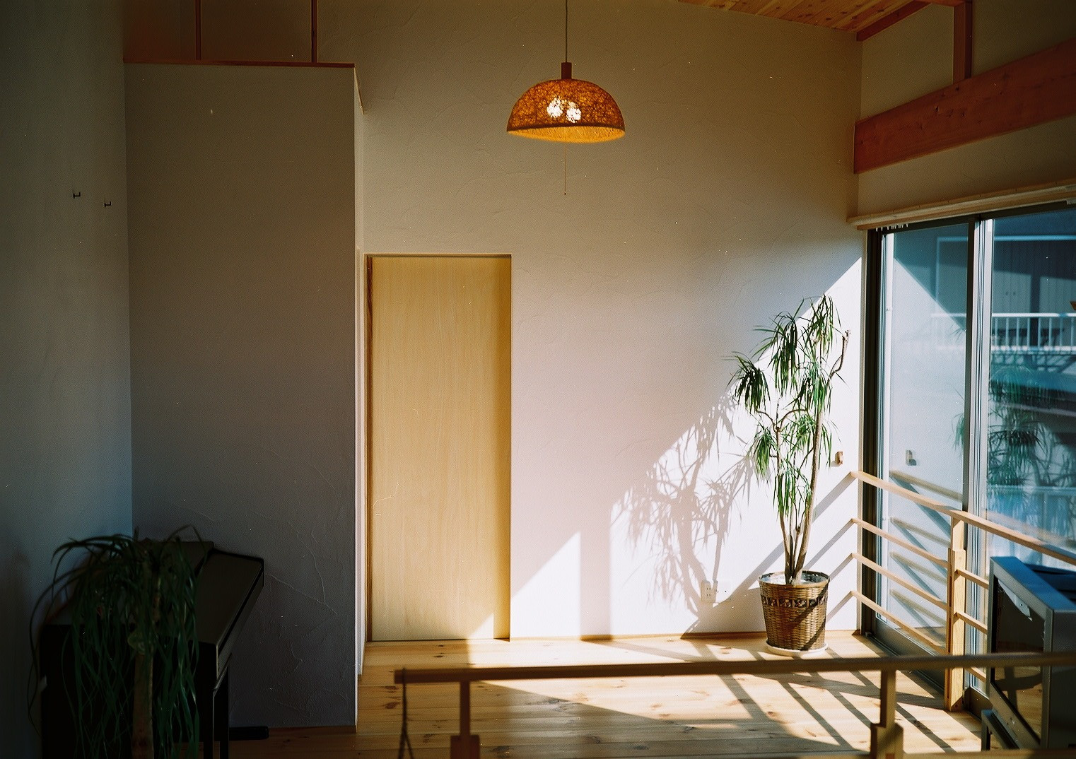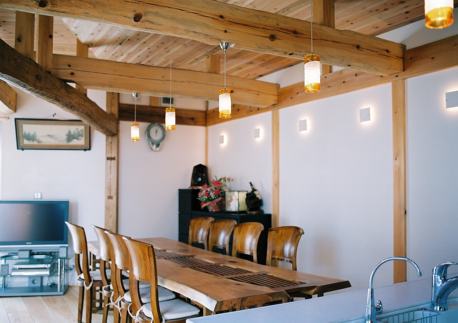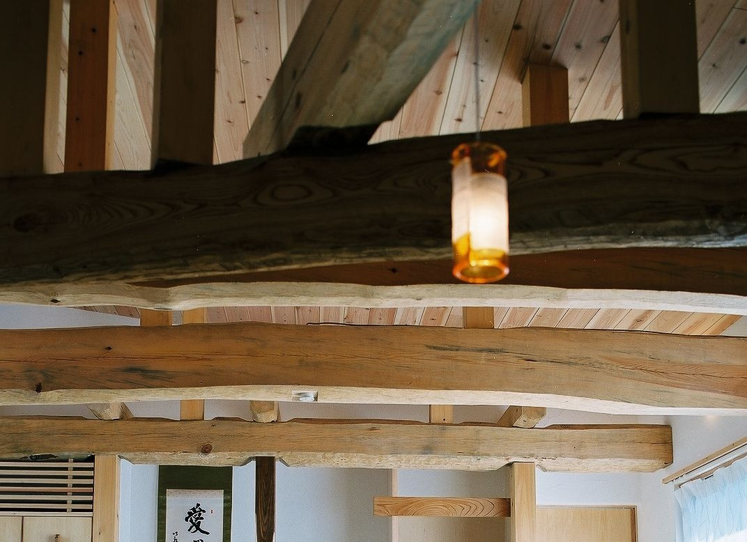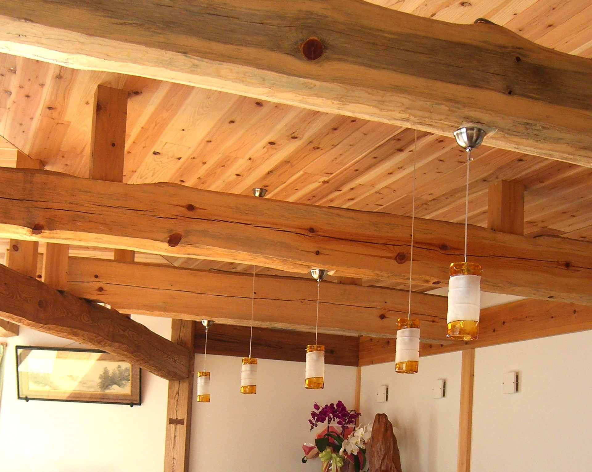 照明:ベネチアンガラス 梁:赤松 太鼓梁