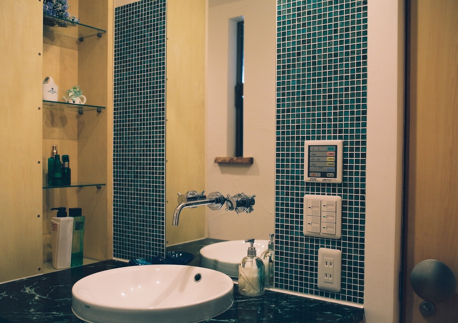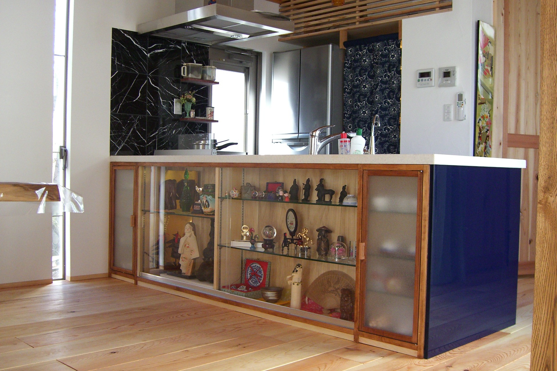 カウンター:大湾蛇紋席石(大理石) 前壁:ガラスモザイクタイル貼り