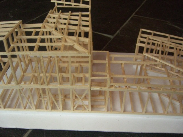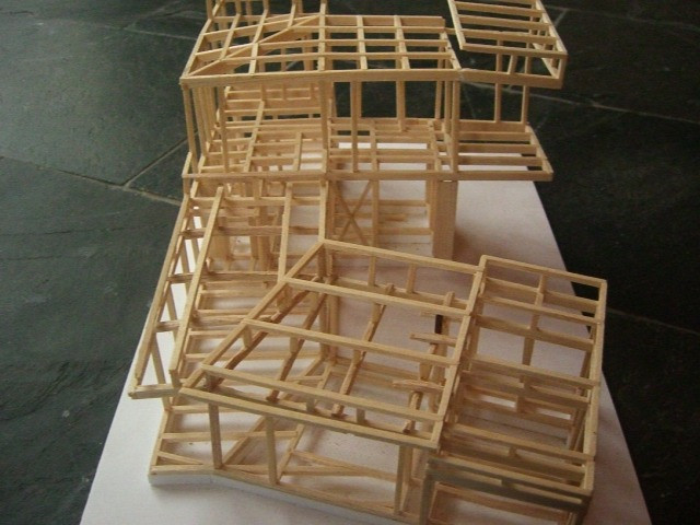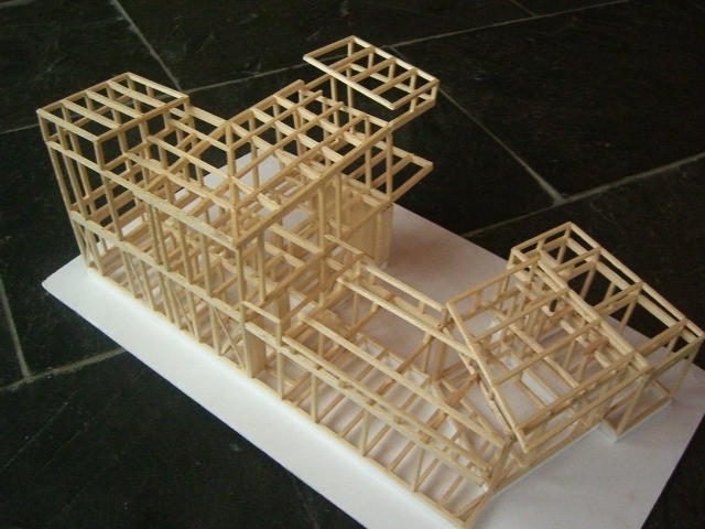 スケルトン模型にて、構造材の配置、大きさを検討する