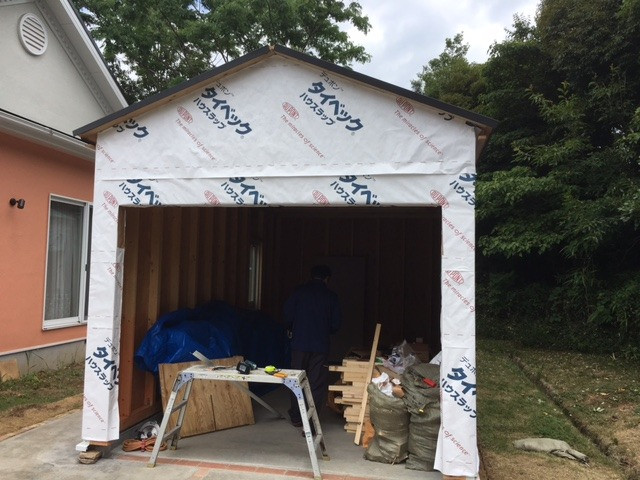ツーバイフォー工法で車庫を自社施工で造りました。