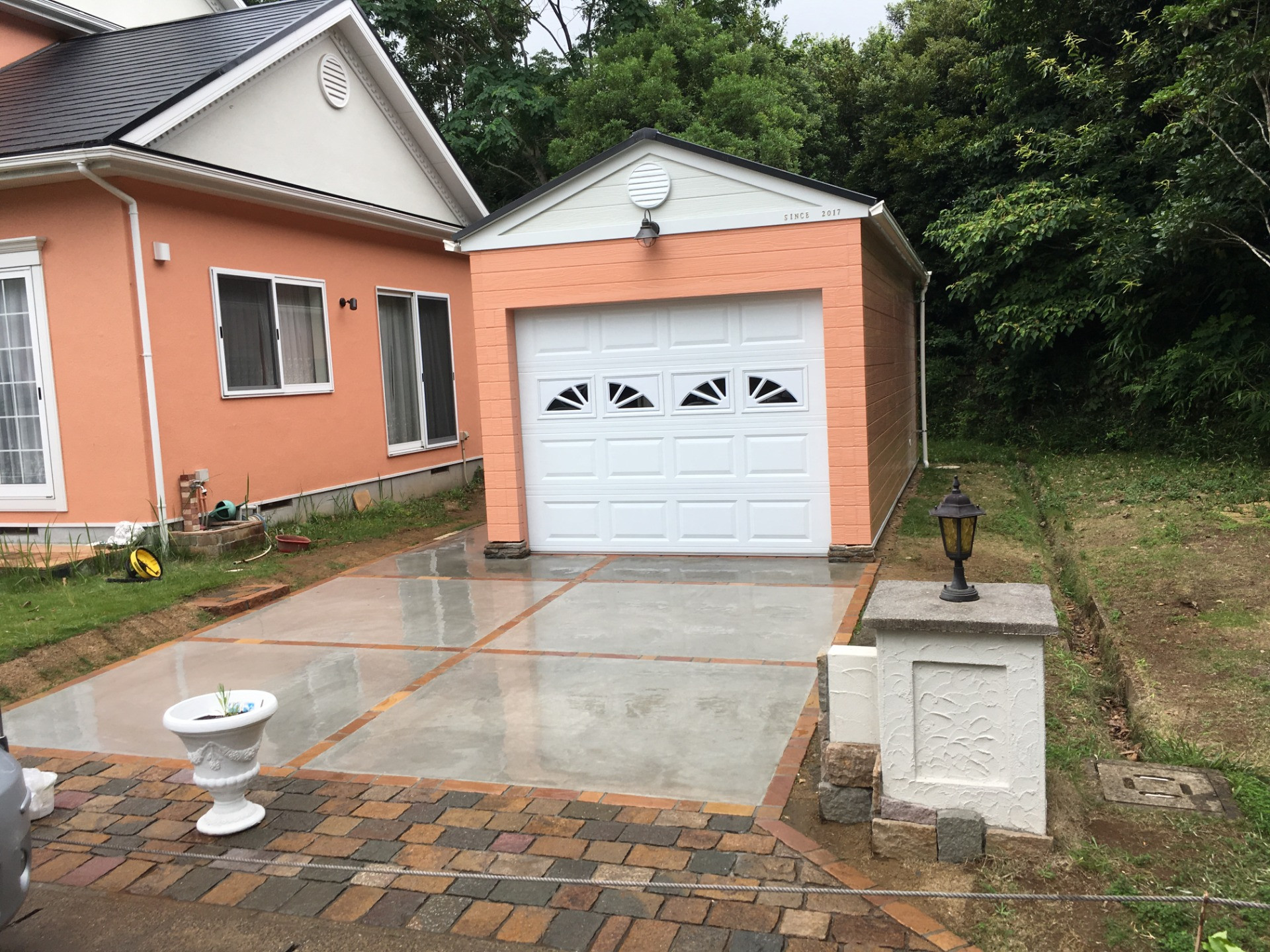 お施主様の要望の色合い、デザインを盛り込んだ完全、オリジナルな車庫です。