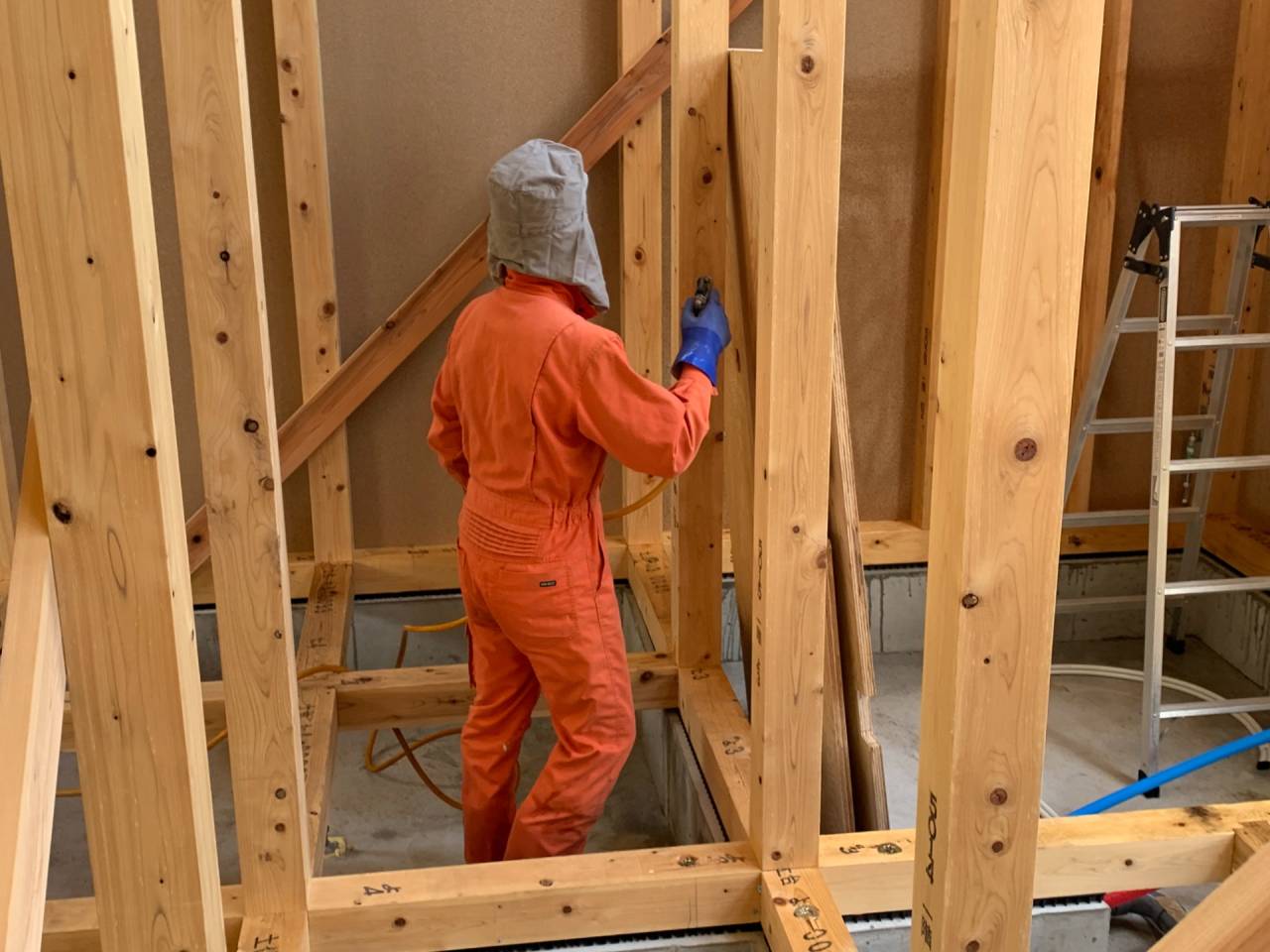 骨組み(土台、柱、梁)は全て国産の無垢材です。外壁、屋根、塗装は職人バッカの職人による工事です。